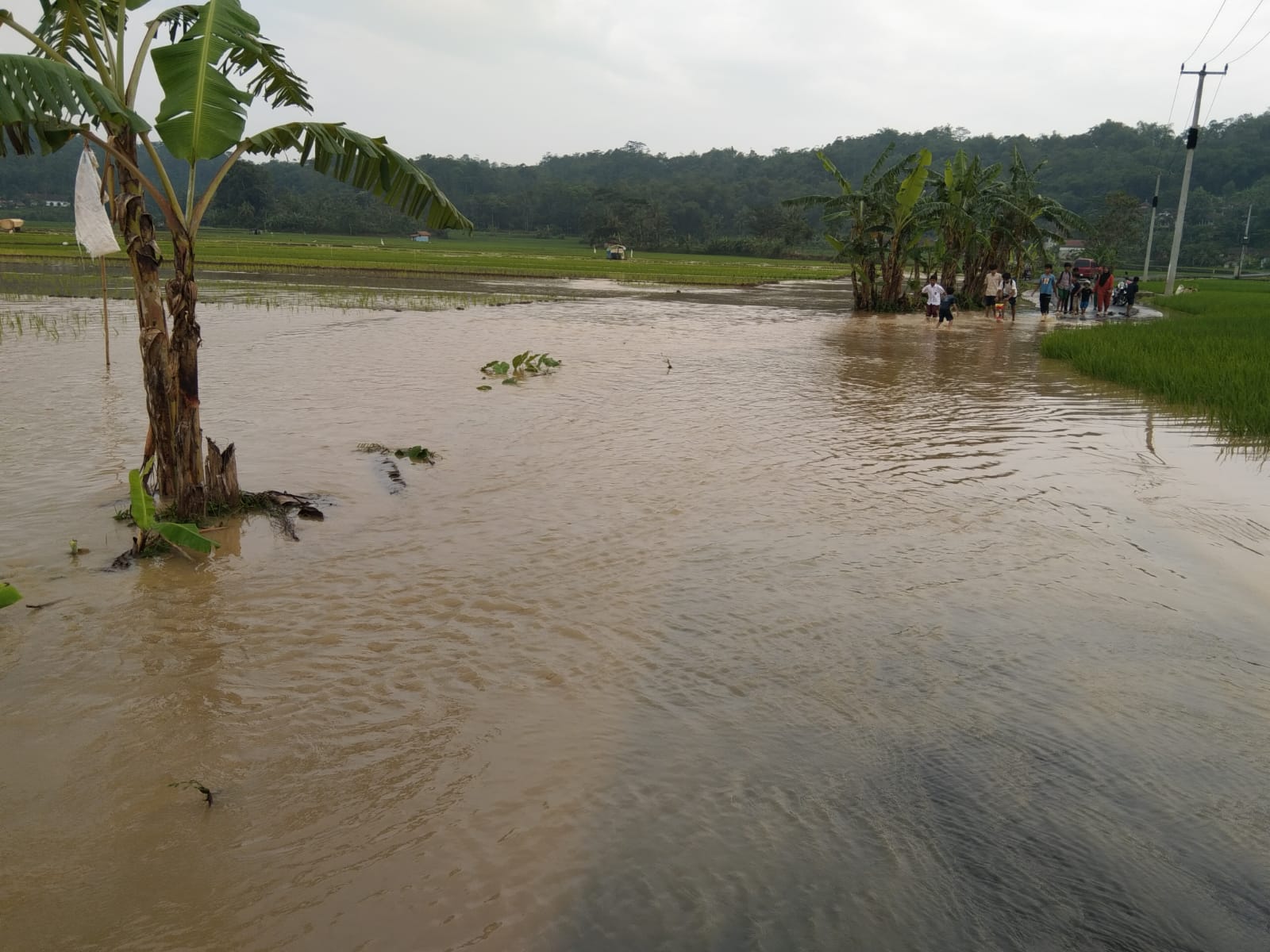 Banjir rendam jalan dan Pesawahan Desa Muktisari